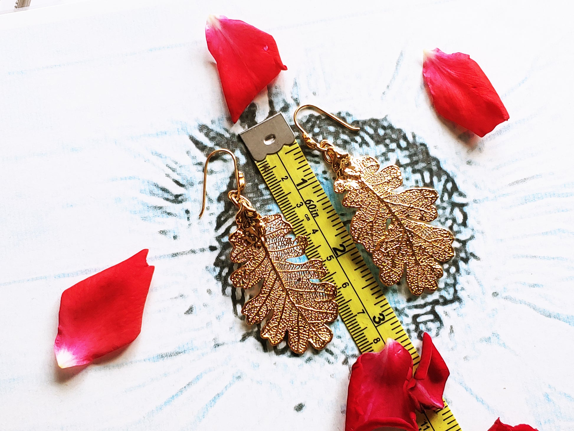 Since we can’t wear tree’s on our earlobes, we can take the leaves that they shed each year for self preservation. Enter creative humans, throw in the preservation process of electroformation in 24 karat gold, and we have beautiful pieces of wearable art.