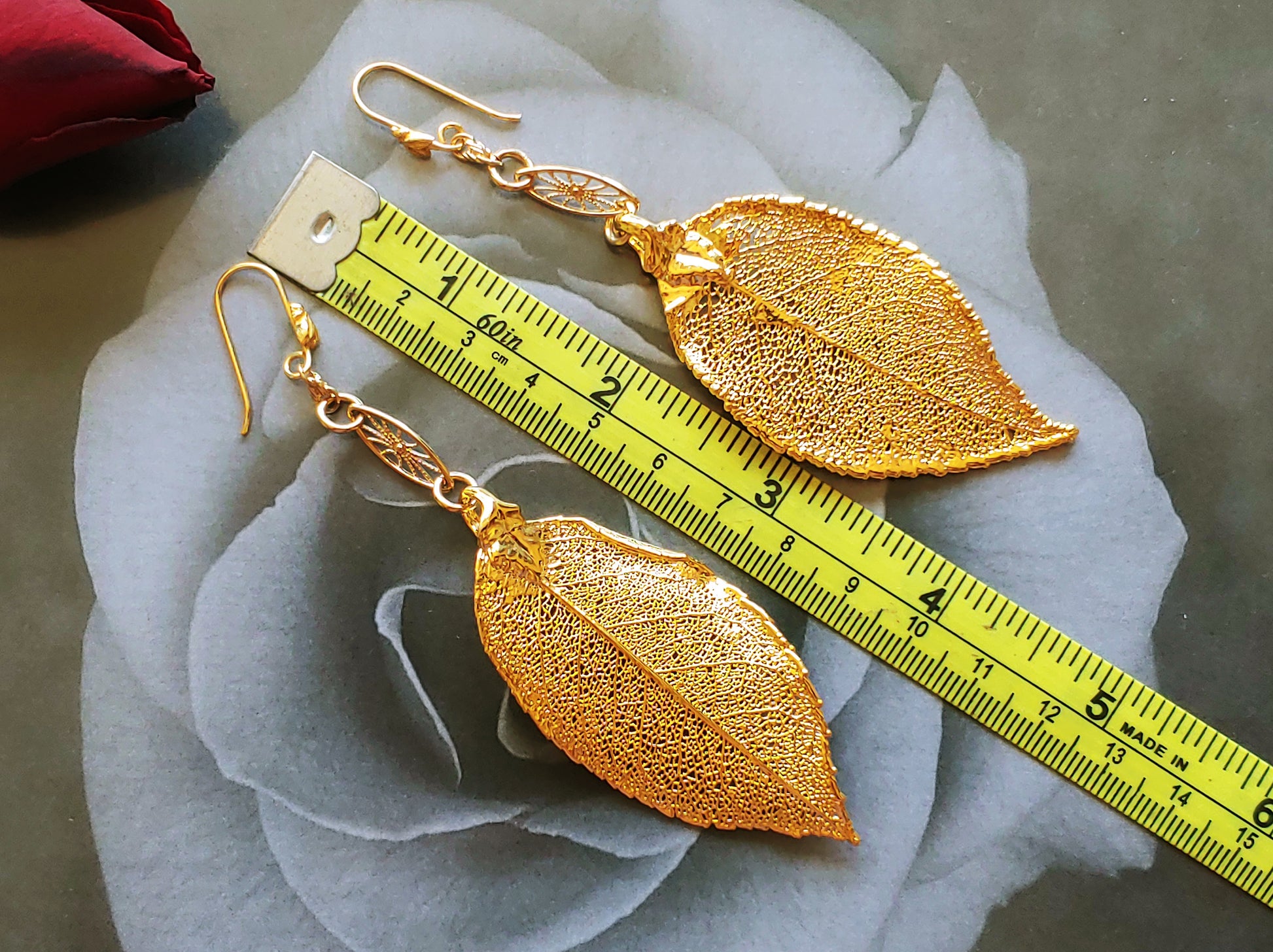 Both earrings average just over 4 inches long