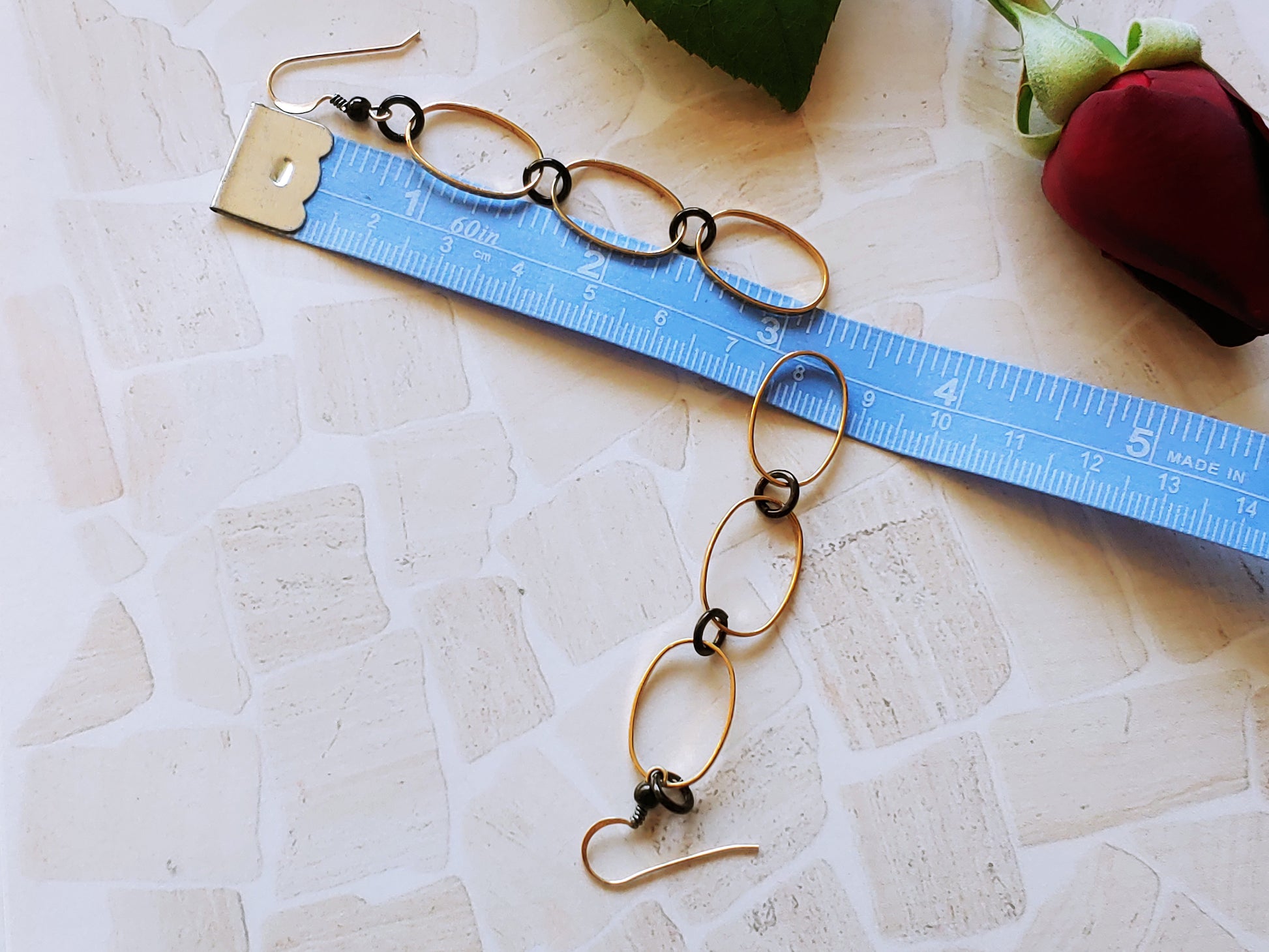 The gold version is the opposite. The links are made of 24k gold plated links, with gunmetal connectors, then14k gold filled ear wire.
